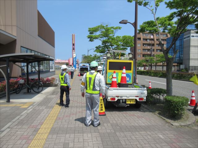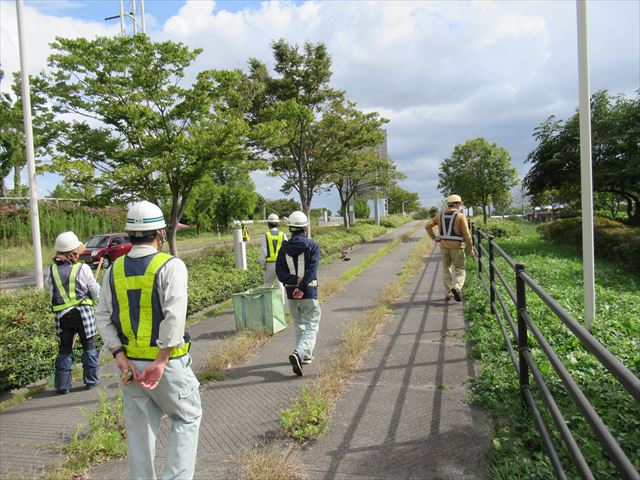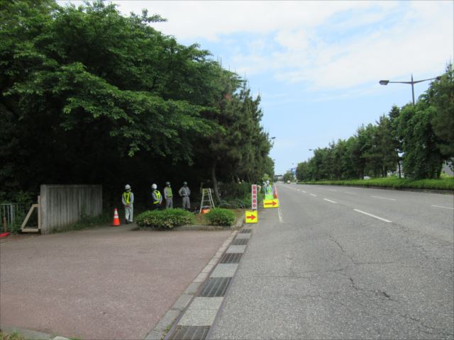今回は、主要地方道新潟亀田内野線、中央区女池上山付近の委託現場を技術委員会メンバー4名で実施し、通行者及び作業員に対しての安全対策が確実に実施されていることを確認しました。
