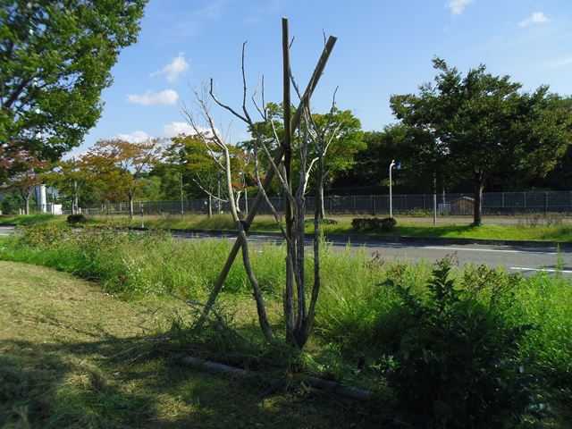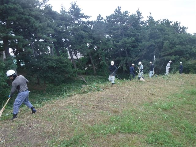 作業内容: 記念モニュメント周りの芝刈り、除草、清掃等、公園下松林の草刈